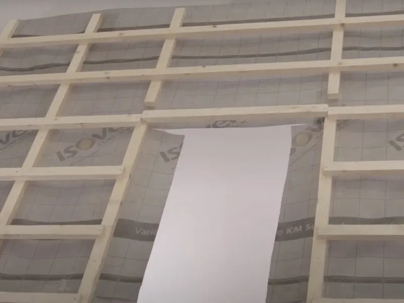 Для монтажа мансардного окна необходимо установить вспомогательные рейки, а затем вырезать прямоугольное отверстие в мембране в соответствии с рамой окна. Гидроизоляцию следует установить вокруг всего окна к верхнему краю рамы. Для этого начинают с присоединения нижней дополнительной ленты из контактной мембраны к окну. Затем устанавливают балку для крепления кровельного покрытия на нижний край и прикрепляют контактную мембрану по бокам. Для дренажа устанавливают поддерживающую рейку под дренажный желоб над окном и сквозную рейку под черепицу на расстоянии 10-12 см от капельника. Дренажный желоб следует установить под углом 2-3°. Затем крепится верхняя дополнительная лента из контактной мембраны. При монтаже всегда используйте только высокопаропроницаемую пленку (паропроницаемость свыше 1 000 г/м²). Супердиффузионная контактная мембрана пропускает водяной пар, но останавливает жидкую влагу. Перекрытие пленок в местах соединения должно быть не менее 200 мм. Нижний ряд черепицы под окном не должен быть нарушен, чтобы обеспечить абсолютно водонепроницаемое соединение.